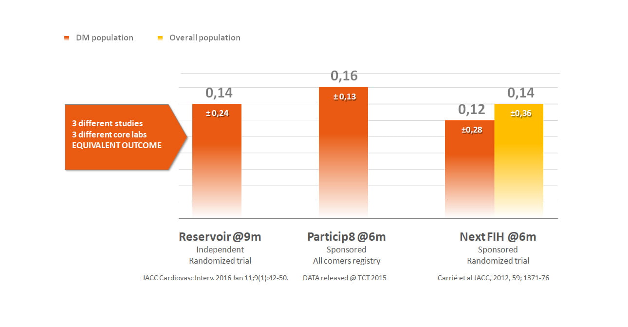 DM 환자 (n=1175) 대상으로 진행한 임상 연구에서 DP-ZES 제품에게 Superiority (p=0.030) 를 입증하였습니다.